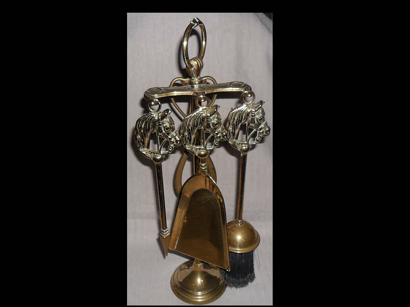 A LOVELY SET OF BRASS FIRE IRONS IN GOOD CONDITION - HEIGHT 41CM WEIGHT 1.3KGS - POSTAGE R40 - PLEASE VIEW PHOTOGRAPHS