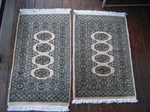 A SET OF PURE WOOL HANDWOVEN KARACHI BOKHARA RUGS IN AN ALMOST UNUSED CONDITION