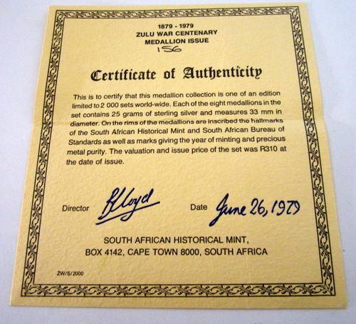 A SET OF STERLING SILVER ZULU WAR MEDALLIONS---1979