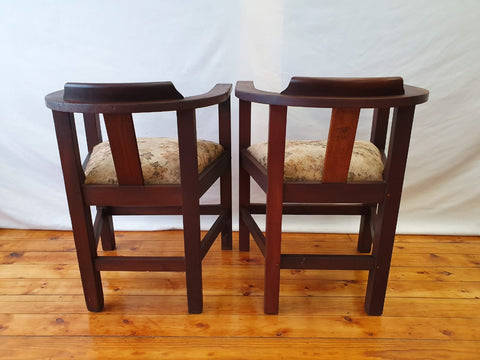 These superb and very well made vintage oak captains armchairs with upholstered seats are in good vintage condition and measure 58cm x 55cm x 74cm high. The chairs are solidly made and the little wear and tear adds to the appeal of these awesome old captains armchairs. These would make an awesome pair in a study or office with a antique desk. The upholstery can do with a clean. Please view the pics carefully to fully appreciate these wonderful solid oak captains chairs and to confirm the condition.