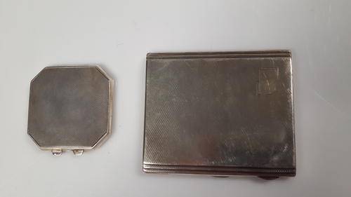 A SILVER CIGARETTE CASE AND SILVER COMPACT MIRROR, BIRMINGHAM, JOSEPH GLOSTER LTD, 1946