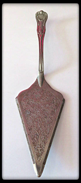 A Silver Metal Diamond-Shaped Cake Serving Spatula- Beautifully Decorated - Lovely Item!