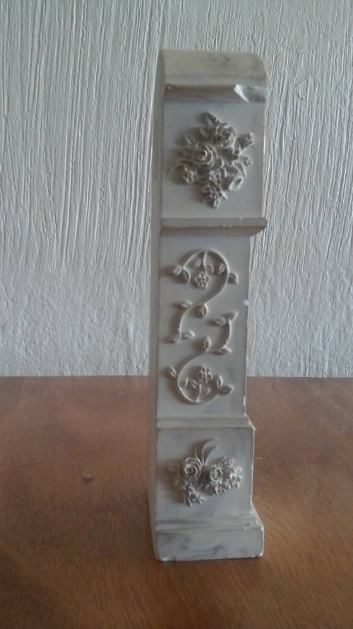 THE FRAME OF THE CLOCK IS MADE FROM RESIN? AND IS SHAPED TO LOOK LIKE A GORGEOUS CLOCK TOWER WITH FLOWERS EMBOSSED ALL OVER IT. IT IS SIMPLE BUT STUNNING IN DESIGN.