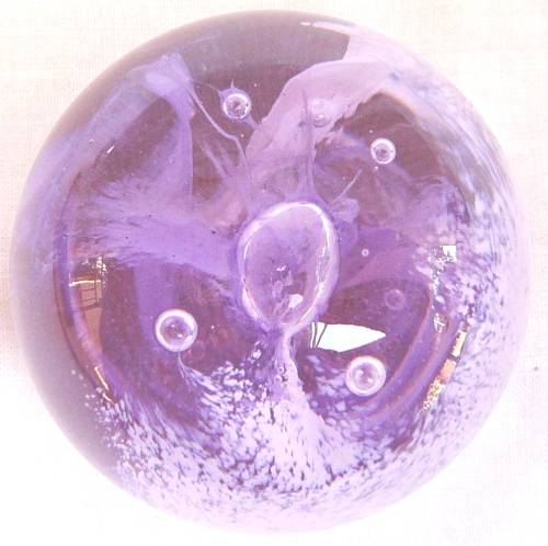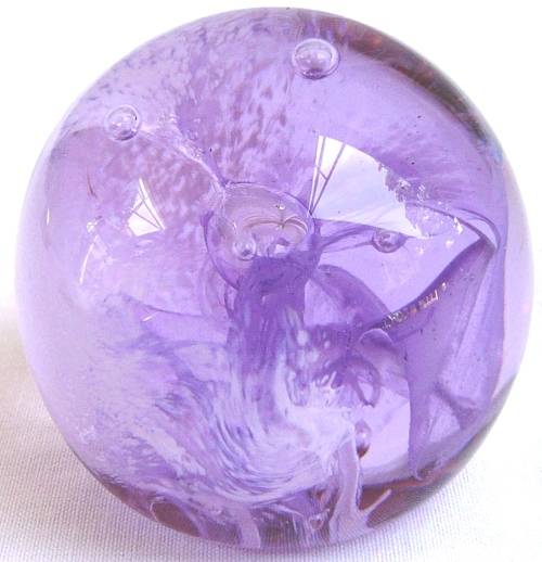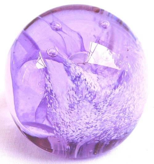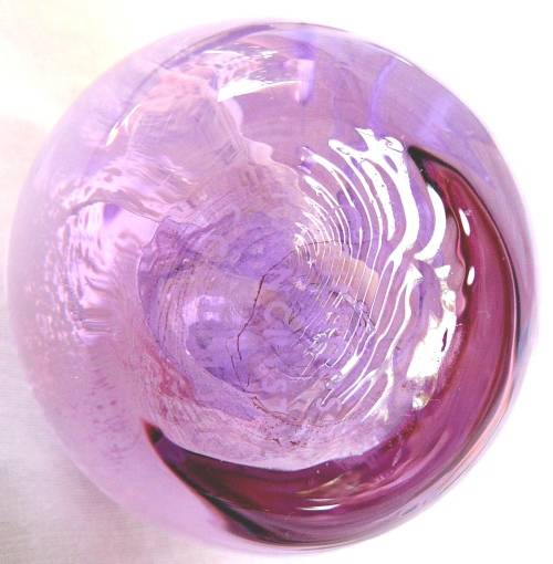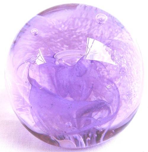 This Caithness Glass Paperweight is titled 'Moon Crystal' The colour varies from Pink to Purple to Blue depending on the light available, it is in excellent condition, and is 51 mm high, has a diameter of 54 mm and weighs 212 grams.