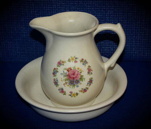-a small Pitcher and Bowl Set (Unmarked) Pitcher= 155x170x110mm Bowl = 228mmx 50mm CONDITION: SOLD as FOUND - -Please see ALL IMAGES below |