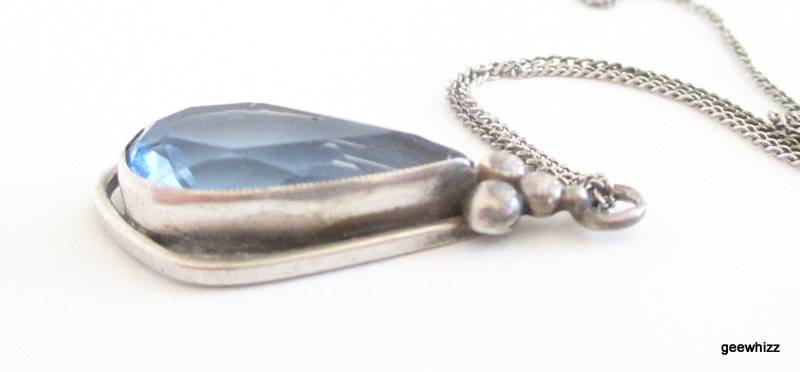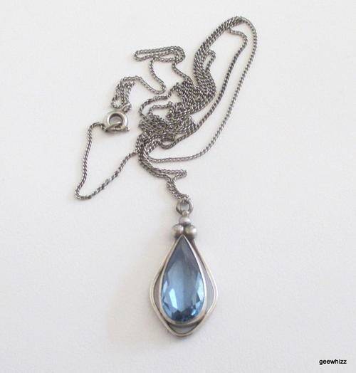 The chain is stamped ,925 silver. I cannot find a silver marking on the pendant but it has been tested by a jeweller and tests silver.A couple of tiny chips on the stone which are hardly noticeable.
