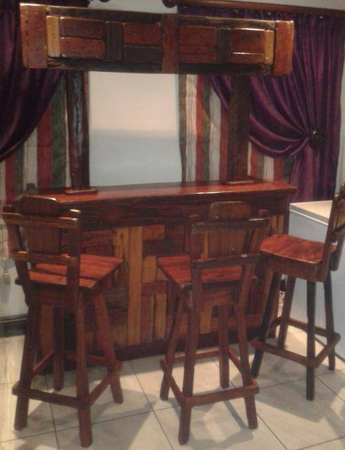 a Solid Sleeper Bar Counter With lots Of Space And 4 X Solid Sleeper Bar Chairs