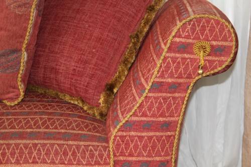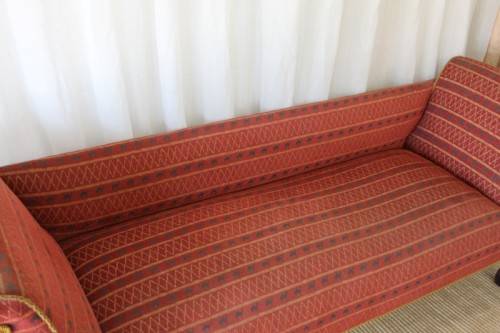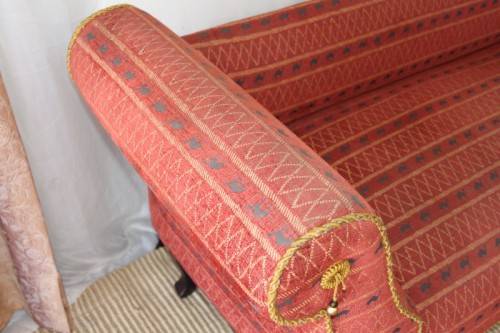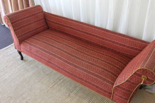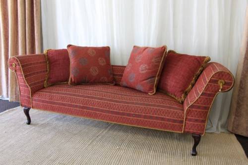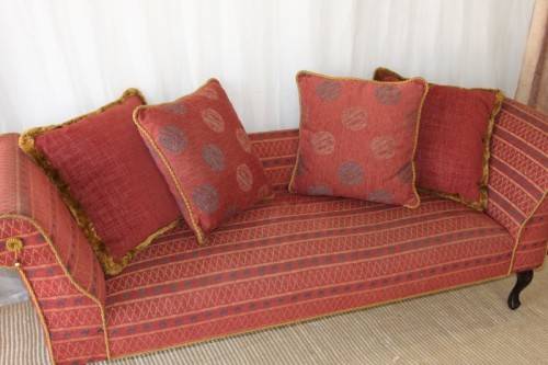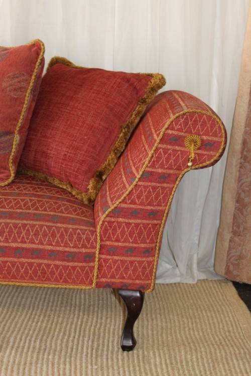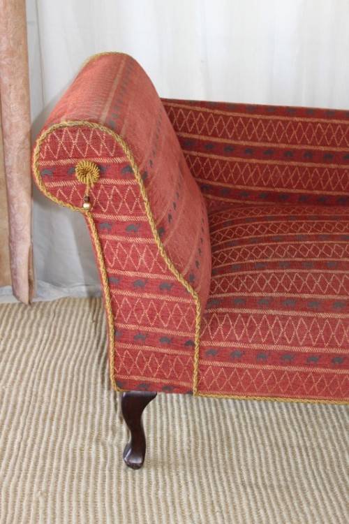 THIS SPECTACULAR ANTIQUE QUEEN ANNE CHAISE-LONGUE SOFA WITH A MIDDLE EASTERN FLAIR IS IN SUPERB CONDITION FOR ITS AGE AND HAS RECENTLY BEEN UPHOLSTERED IN A QUALITY DURABLE AND EXPENSIVE FABRIC. THE CHAISE MEASURES A VERY DECENT 2020mm LONG x 580mm WIDE x 680mm HIGH. THE CHAISE WOULD LOOK INCREDIBLE AGAINST A WALL IN A LIVING ROOM OR AT THE END OF A BED OR EVEN AS A ROOM DIVIDER. THE CHAISE HAS FOUR CUSHIONS AND THE FABRIC HAS "CAMEL" BROCADE DETAILING AND HAS COMFORTABLE PADDED SIDE-RESTS. THE DOUBLE SIDE RESTS ARE VERY MUCH A MIDDLE EASTERN TAKE ON THE TRADITIONAL FRENCH CHAISE LONGUE. THIS IS A BEAUTIFUL AND VERY WELL MADE ANTIQUE CHAISE LONGUE IN STUNNING CONDITION. PLEASE VIEW THE PICS CAREFULLY TO FULLY APPRECIATE THIS FABULOUS CHAISE AND TO CONFIRM THE CONDITION.