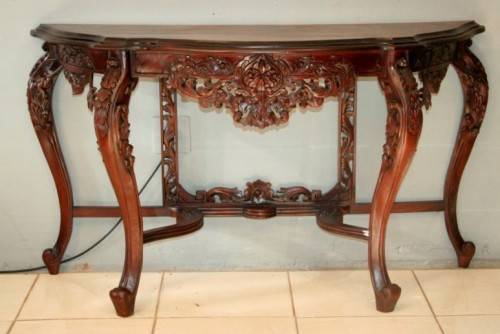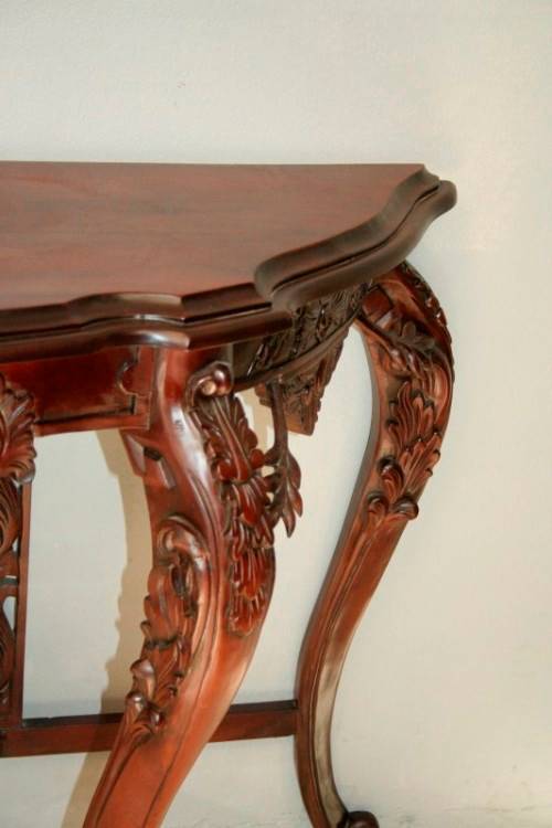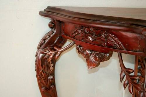 This superb antique hand carved Rococo "Late Baroque" period (early to mid 18th century) rosewood half-moon occasional/ hallway table is in wonderful condition for its age. The table has the most amazing ornate hand carved detailing on the legs and the facades and the stunning French influence is very evident in the creation of this table. The table measures 140cm long x 53cm wide x 81cm high. The table sits solidly on the ground and has been beautifully crafted and styled. This is a quality piece of furniture and would look amazing just about anywhere where a eye catching piece is needed. Please view the pics carefully to fully appreciate this truly stunning antique Rosewood table and to confirm the condition.