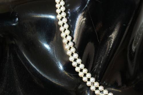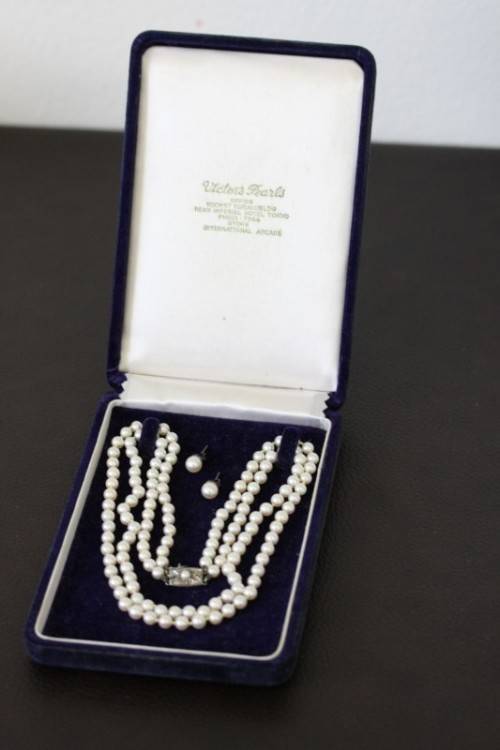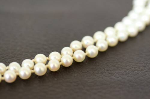 This spectacular double-strand Japanese Akoya cultured pearl necklace with a sterling silver engraved clasp and matching pearl earrings is still in its original presentation box. The Akoya pearl necklace measures 46cm long and consists of 139x 5mm pearls with a single 4mm pearl on the silver clasp and a matching pair of 7mm Akoya pearl earrings for pierced ears. This incredibly elegant pearl necklace is in beautiful condition and has no visible perfume staining or imperfections. This beautiful pearl necklace would be a stunning gift for that special lady. Please view the pics carefully to fully appreciate this incredible white pearl necklace and to confirm the condition.