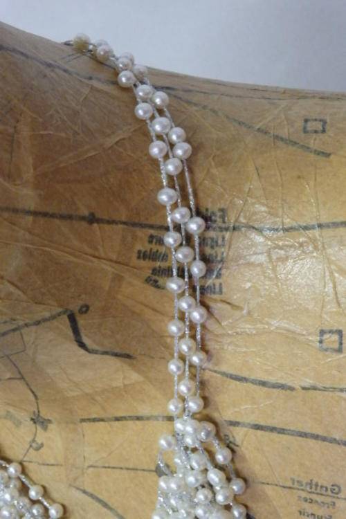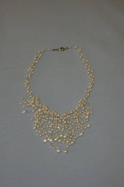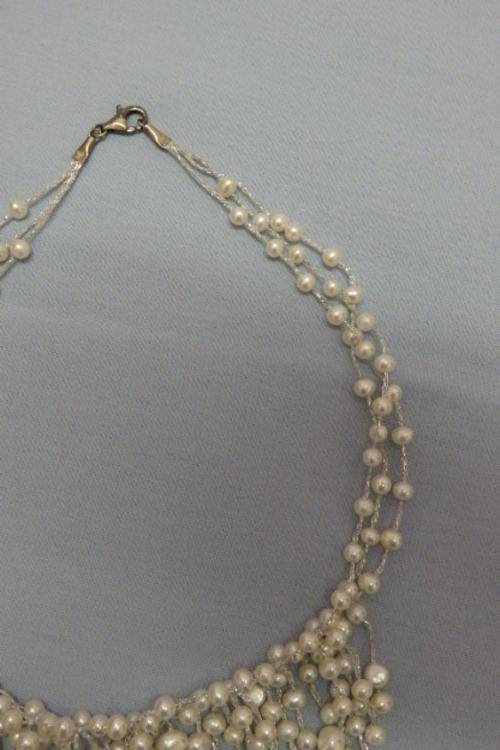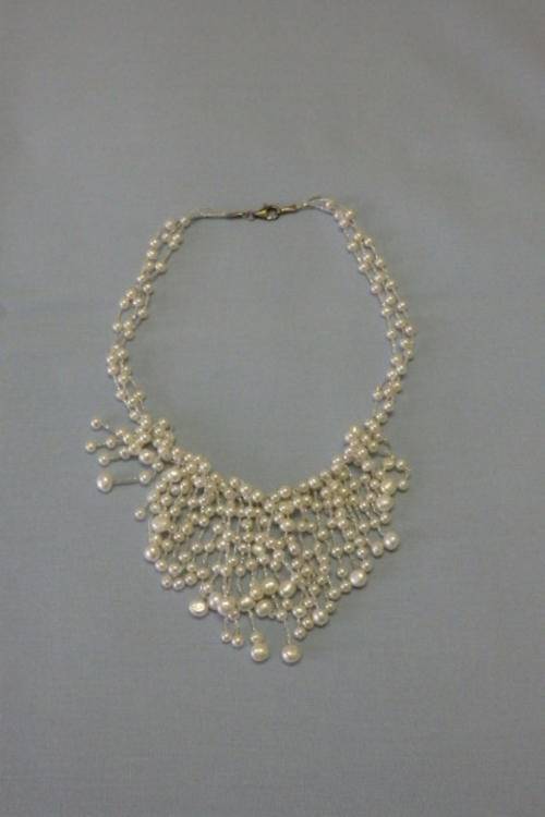 THIS ABSOLUTELY SPECTACULAR LADIES PEARL NECKLACE WITH A MULTITUDE OF GENUINE CULTURED WHITE PEARLS IS ONE OF THE MOST BEAUTIFUL "CHUNKY" PEARL NECKLACES THAT I HAVE SEEN IN A LONG TIME. THE NECKLACE MEASURES 43.5cm LONG AND HAS A STERLING SILVER CLASP. THIS PEARL NECKLACE COULD BE WORN IN BOTH A FORMAL AND A CASUAL ENVIRONMENT.