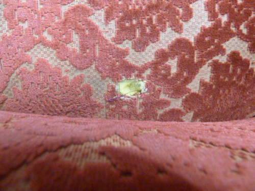 This absolutely stunning hand carved Victorian styled three-seater sofa couch with deep button detailing on the backrest and rolled padded armrests is in fantastic condition and has absolute minimal wear and tear!!! The sofa measures a very decent 143cm long x 67cm wide x 103cm high. The beautiful carved detailing around the sofa compliments the styling of the sofa perfectly. The sofa would make a wonderful addition in a formal lounge or living room, or as a settee in a bedroom or sun room or even in an executive's office. This is a quality piece of furniture and would be an asset to any home. Please view the pics carefully to fully appreciate this superb sofa and to confirm the condition. There has been a slight repair on the one back leg and the upholstery. There is a tiny as per the pic.