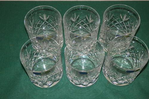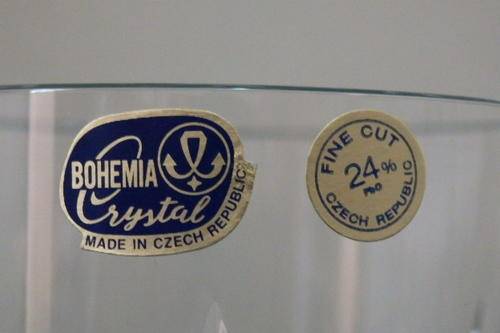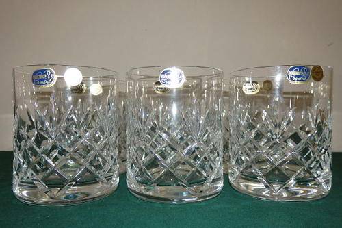 THIS SPECTACULAR SET OF SIX "BOHEMIA" CZECHOSLOVAKIAN BOHEMIAN (24% LEAD CUT CRYSTAL WHISKEY GLASS STILL HAVE THEIR ORIGINAL LABELS ON THEM AND I DOUBT THAT THEY WERE EVER USED.