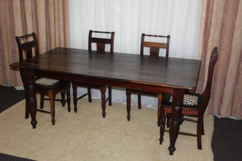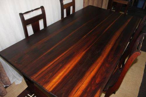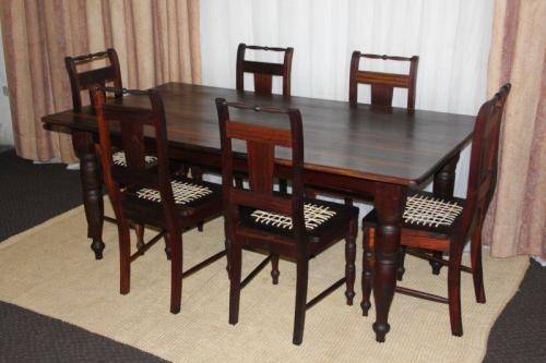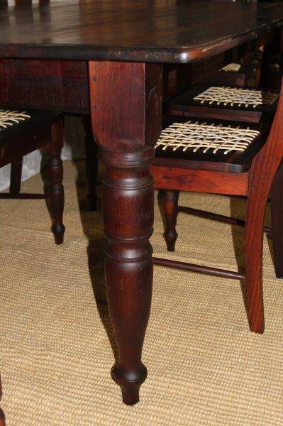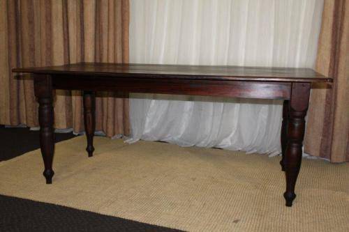 THIS SPECTACULAR SOLID STINKWOOD DINING ROOM TABLE WITH SOLID TURNED LEGS IS IN AWESOME CONDITION AND IS A TRULY BEAUTIFUL TABLE. IT WOULD ALSO BE PERFECT AS A KITCHEN TABLE OR EVEN ON A COVERED PATIO OR LAPA. THE TABLE MEASURES 1830mm LONG x 975mm WIDE x 760mm HIGH. THE TABLE HAS AWESOME WEIGHT TO IT AND THE QUALITY IS VERY EVIDENT IN THE WORKMANSHIP OF THIS AMAZING STINKWOOD TABLE. PLEASE NOTE THE CHAIRS ARE NOT INCLUDED AND ARE AVAILABLE IN THE FOLLOWING LISTING. PLEASE VIEW THE PICS CAREFULLY TO FULLY APPRECIATE THIS STUNNING TABLE AND TO CONFIRM THE CONDITION.