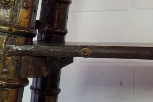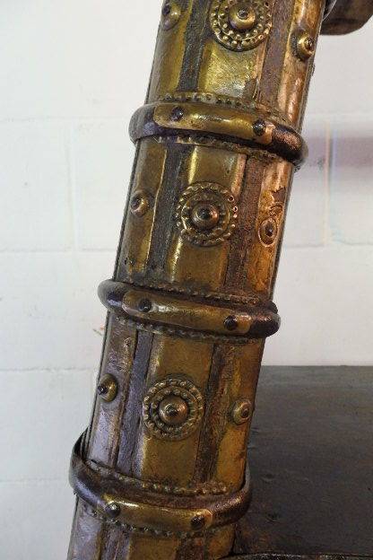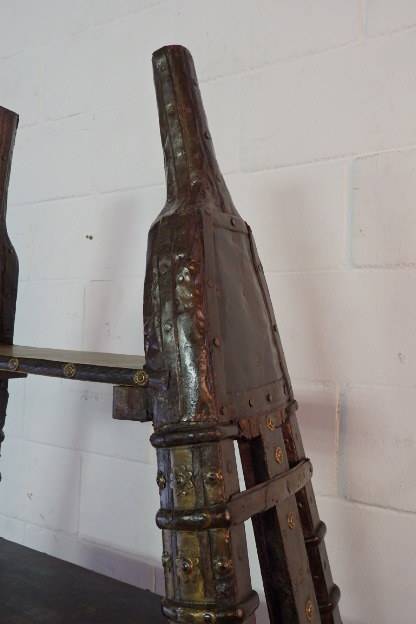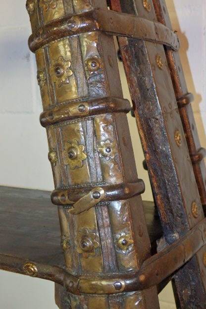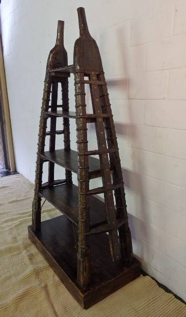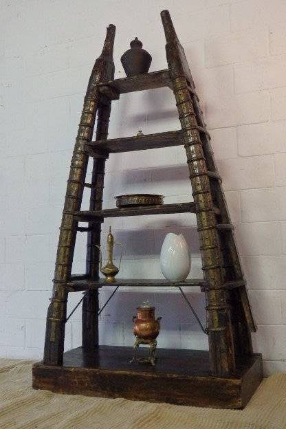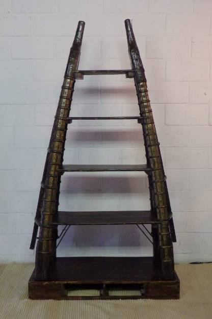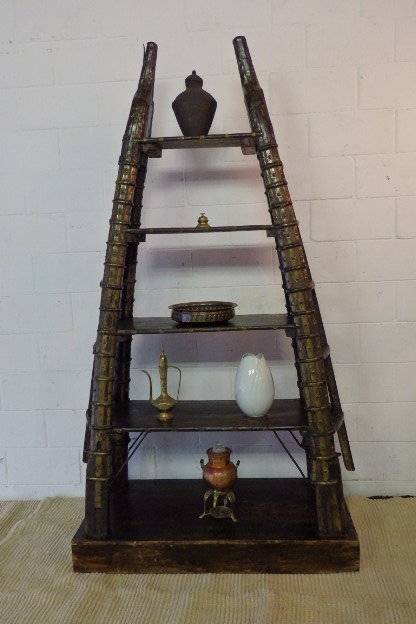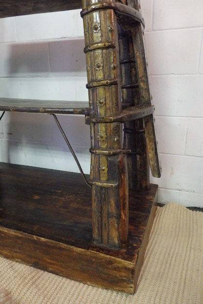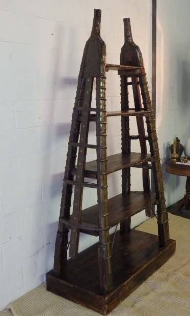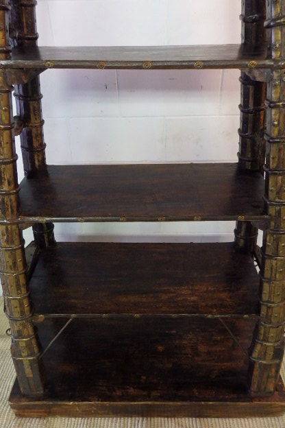 THIS INCREDIBLE TALL ANTIQUE circa 19th CENTURY BESPOKE WOODEN SHOWCASE WITH ASIAN/ NORTH AFRICAN BRASS AND METAL INFLUENCED DETAILING AND ROSETTES IS A ONE OF A KIND SHOW CASE AND ONLY A HANDFUL OF THEM WERE SPECIFICALLY COMMISSIONED (PLEASE SEE THE PREVIOUS LISTING FOR THE OTHER UNIT). THIS AWESOME SHOWCASE MEASURES APPROXIMATELY 1160mm LONG x 580mm WIDE x 2160mm HIGH. THE ARMS AND SHELVES OF THE SHOWCASE ARE MADE OUT OF ANTIQUE WAGON WOOD WITH THE MOST INCREDIBLE BRASS AND METAL DETAILING.