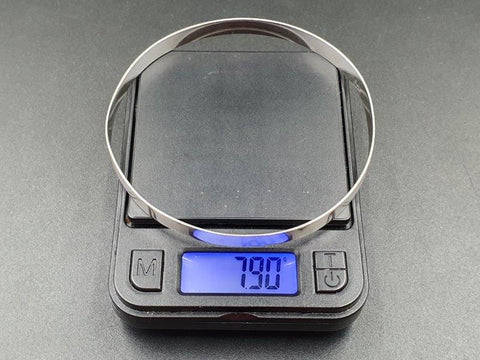 This round sterling silver ladies 5mm fashion bangle looks amazing and would be the perfect gift for that special someone. The bangle is roughly 6.5cm wide. The bangle is stamped silver inside. It weighs 7.90.