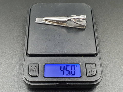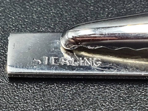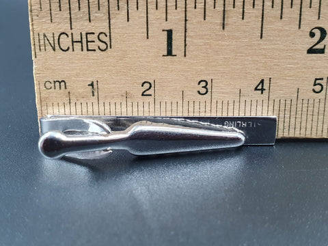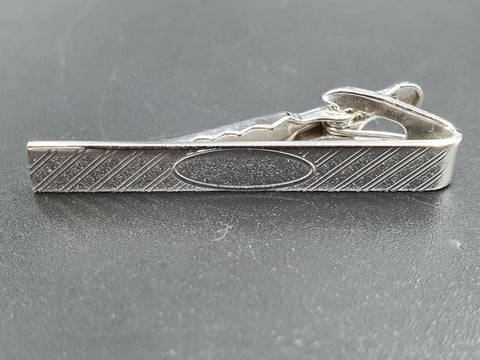 This handsome stamped sterling tie clip is in good condition.Tie-clips are a trend that are finding their way back into the fashionable man's wardrobe. It measures just over 4cm long and weighs 4.50grams. The pin has space in an oval on the front and one could have it engraved, a wonderful Fathers day or birthday gift.