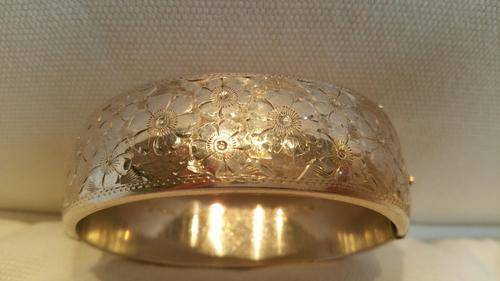 A Silver Wax Filled Hinged Cuff Bangle Beautifully Engraved with Flowers.