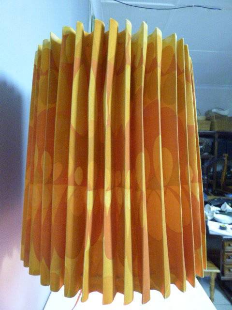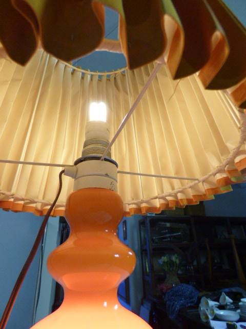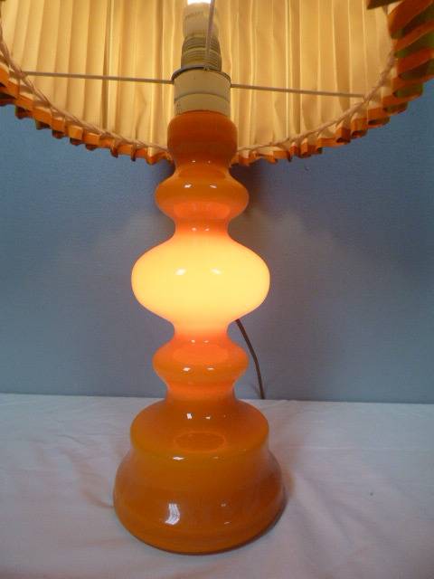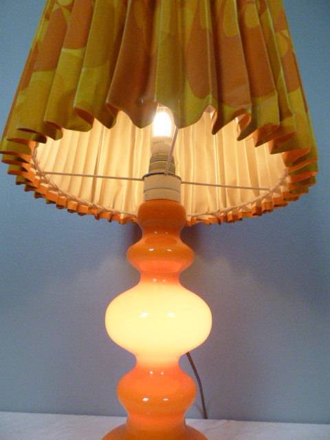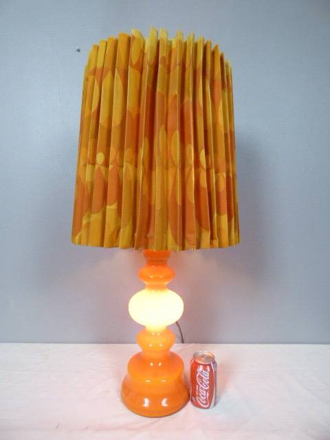 THIS ABSOLUTELY GORGEOUS TALL LATE 70s RETRO TABLE-LAMP COMES WITH A VIBRANT PLEATED SHADE AND IS IN VERY GOOD WORKING CONDITION!!! THE LAMP STANDS APPROXIMATELY 83cm HIGH. IF ONE IS GOING FOR THAT RETRO LOOK THIS IS A MUST HAVE IN YOUR HOME, ITS ABSOLUTELY STUNNING AND WILL BRIGHTEN UP ANY ROOM YOU CHOOSE TO PUT IT IN. THE LAMP HAS TWO LIGHTS, ONE IN THE BULB OF THE BASE AND ONE ON TOP. 1970s table lamps represent the latter part of the retro era and the full experimentation of newer materials and brighter colors reached its peak. Just about anything went and while there were still some very traditional shapes and silhouettes, the colors and decorative touches were more on the experimental side.