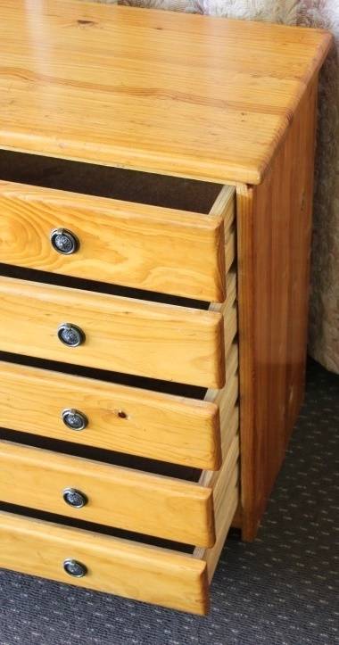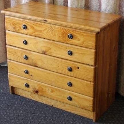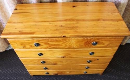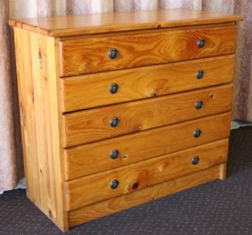 THIS INCREDIBLE 5-DRAWER PINE CHEST OF DRAWERS WITH ORNATE HANDLES IS STYLISH, BEAUTIFUL AND PERFECT FOR ANY BEDROOM! THE DRESSER HAS FIVE GOOD SIZED DRAWERS WITH STUNNING ORNATE HANDLES. THE CHEST OF DRAWERS MEASURES 395mm WIDE x 880mm LONG x 765mm HIGH. PLEASE VIEW THE PICS CAREFULLY TO FULLY APPRECIATE THIS STUNNING PINE CHEST OF DRAWERS AND TO CONFIRM THE CONDITION.