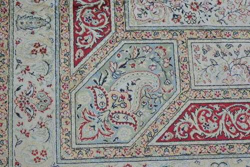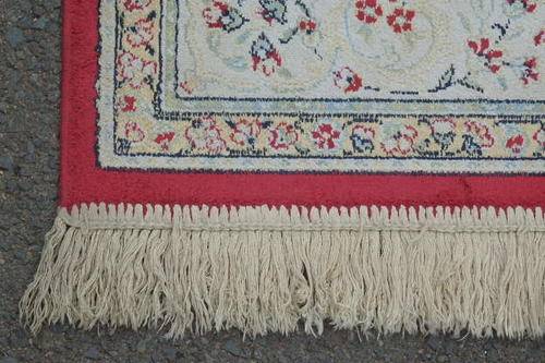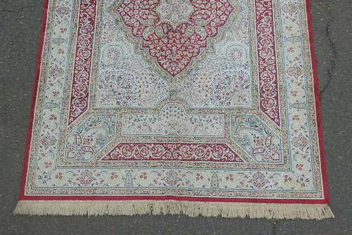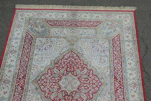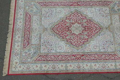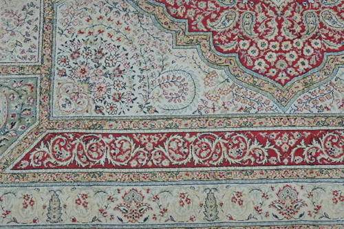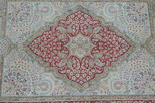 THIS STUNNING AND "BOLD" (LARGE) BELGIAN MADE SILKY CARPET/ RUG HAS THE MOST INCREDIBLE PATTERNS AND MEASURES 2390mm x 1555mm. THE CARPET IS PREDOMINANTLY CREAM AND RED WITH BEAUTIFUL EARTHY TONES THROUGHOUT THE PATTERN. THE CARPET WOULD SUIT JUST ABOUT ANY DECOR COLOUR SCHEME IN ANY LIVING AREA.