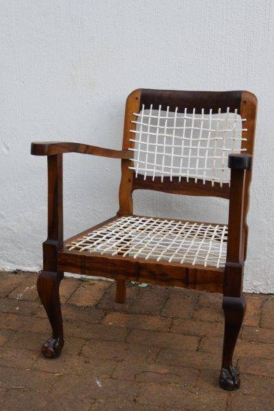 THIS ABSOLUTELY STUNNING RIEMPIE CHAIR IS PERFECT FOR A BATHROOM OR THAT CORNER WHERE SOMETHING IS MISSING.... PERHAPS IN A BEDROOM OR A STUDY! THE CHAIR IS VERY WELL BUILT, WELL PUT TOGETHER AND DEFINITELY MADE TO LAST! PLEASE VIEW THE PICS VERY CAREFULLY FOR MORE DETAIL AND THE GENERAL CONDITION; WHAT YOU SEE IS WHAT YOU GET. POSTAGE AND PACKAGING WILL NOT BE POSSIBLE SO PLEASE ARRANGE FOR COLLECTION IN EDENVALE!