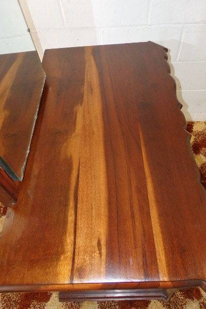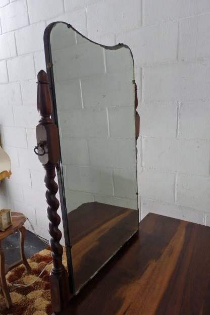 THIS INCREDIBLE ANTIQUE VICTORIAN SOLID IMBUIA QUEEN ANNE DRESSER WITH SUPERB "BARLEY TWIST" MIRROR COLUMNS IS IN AMAZING CONDITION FOR ITS AGE AND MEASURES 850mm LONG x 485mm WIDE x 1510mm HIGH. THE DRESSER HAS THREE GOOD SIZE DOUBLE HANDLED DRAWERS. THE DRAWER JOINS ARE TONGUE AND GROOVE JOINTS WHICH IS ALSO A GREAT INDICATOR OF ITS AGE. THE MIRROR HAS A LITTLE AGE RELATED WEAR AND TEAR, BUT IT ADDS TO THE APPEAL OF THESE STUNNING ANTIQUE DRESSING TABLES. THIS DRESSER WOULD MAKE A STUNNING PIECE IN A BEDROOM OR EVEN IN A VICTORIAN BATHROOM.