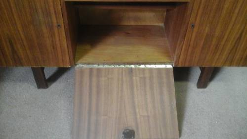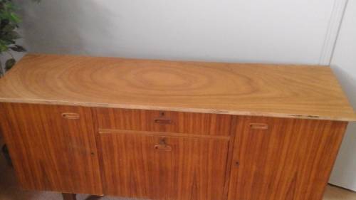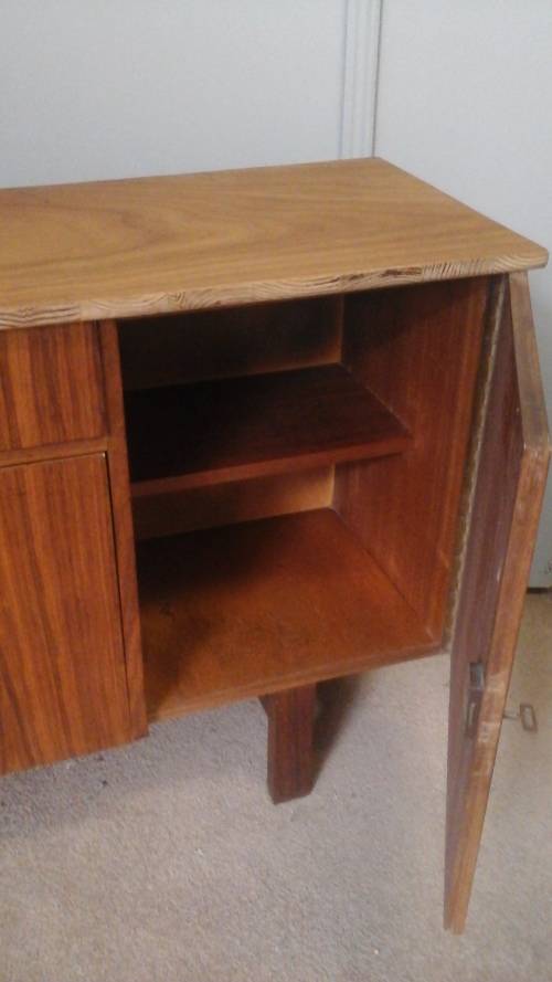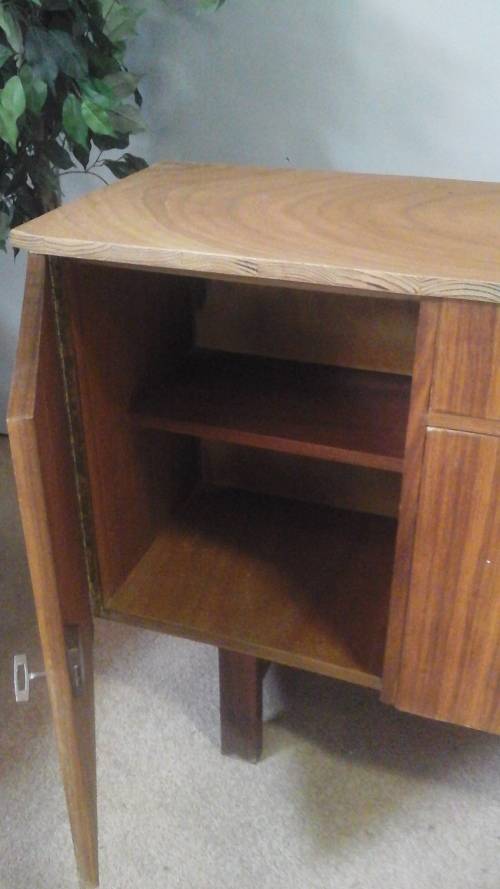 A STUNNING ART DECO STYLE VINTAGE SIDE BOARD. MULTIPLE WOODS. MAGNIFICENT PIECE