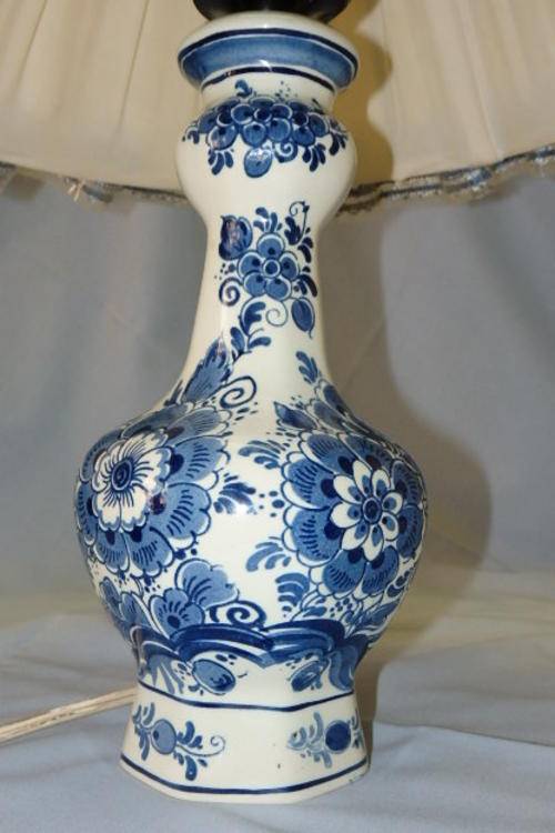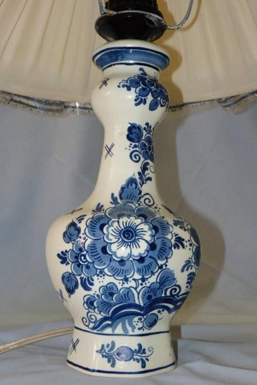 THIS STUNNING AND RARE STAMPED DELFT OF HOLLAND HAND PAINTED BLUE AND WHITE TABLE LAMP HAS AN INCREDIBLE LAMP SHADE AND MEASURES 47cm TALL WITH THE LAMP SHADE AND ROUGHLY 30cm WITHOUT. THERE ARE NO CHIPS OR CRACKS IN THE PORCELAIN AND THERE IS MINIMAL AGE AND USAGE RELATED WEAR AND TEAR. THIS WOULD MAKE A FANTASTIC PIECE IN A LOUNGE OR EVEN IN A BEDROOM AND IS A FANTASTIC PIECE FOR A COLLECTOR. DON'T MISS OUT ON THIS FABULOUS LAMP.
