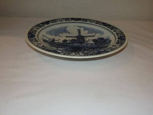 IN THE TRUE TRADITION OF DELFT BLUE AND WHITE PORCELAIN, THIS STUNNING DELFT "ROYAL DISTEL" HAND PAINTED LARGE COLLECTORS PLATE HAS A SERIES OF WINDMILLS PAINTED ALONGSIDE A STREAM. THE DETAILING IN THIS MASTERFUL PIECE IS QUITE AMAZING AND REALLY VERY BEAUTIFUL. THE PLATE MEASURES 27.5cm ACROSS AND IS IN MINT CONDITION WITH NO CHIPS OR CRACKS IN THE PLATE. IF YOU ARE A COLLECTOR, THIS IS ONE OF THE PIECES YOU SHOULD OBTAIN.