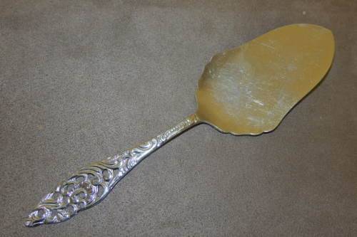 THIS STUNNING DUTCH MADE "ELWEZETTA" "ORNATE" CHROME PLATED CAKE LIFTER/ PASTRY KNIFE IS IN GREAT CONDITION AND HAS MINOR AGE AND USAGE RELATED WEAR AND TEAR AND TARNISH. THE LIFTER IS 19cm LONG. THE LIFTER WOULD LOOK FANTASTIC ON ANY PASTRY TABLE OR DESSERT BUFFET.