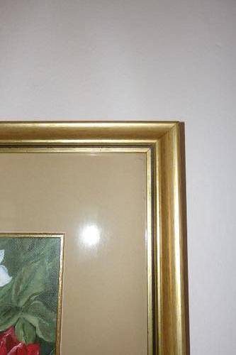 THIS BEAUTIFULLY PAINTED AND FRAMED ACRYLIC ON BOARD PAINTING BY SOUTH AFRICAN ARTIST VERA SAPSED OF AN ARRANGEMENT OF FLOWERS MEASURES 32.5cm x 38.5cm. THE PAINTING HAS BEEN EXQUISITELY FRAMED BEHIND GLASS WITH A BROAD OCHRE COLOURED BORDER (THAT COMPLIMENTS THE COLOURS IN THE PAINTING VERY WELL) IN A GOLD FRAME. THIS IS THE PERFECT PIECE FOR A SMALLER SPACE THAT NEEDS SOMETHING SPECIAL. THERE ARE MINOR SCUFF MARKS ON THE FRAME.