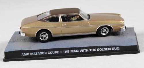 A stunning 1/43 scale AMC Matador Coupe model from the James Bond movie 'The man with the golden gun" This die cast model is in good condition but does not come with the plastic dome or box. Offered at a giveaway price, act fast and bid now!!