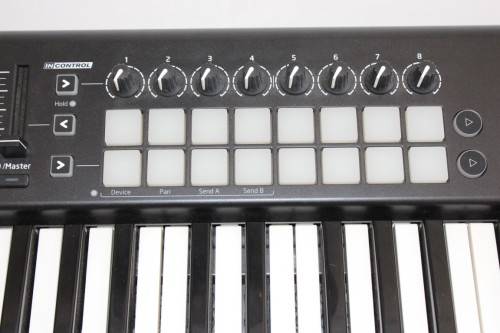 "Launchkey 49 note controller keyboards comes with up to 50 physical controls. It includes 16 velocity-sensitive three-colour launch pads that both trigger and stop clips and scenes in Ableton Live and allow expressive playing in the drum rack.