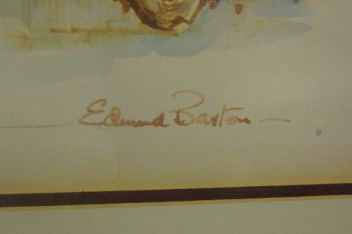 FROM THE INTERNET: Edmund Barton is an international artist producing artwork covering a vast range of subject matter and styles. Based in Gordons Bay near Cape Town in South Africa he operates his own galleries and most of his works are commissions. On the following pages you will see a cross section of paintings for sale and the artist welcomes commissions on any of the subjects shown.