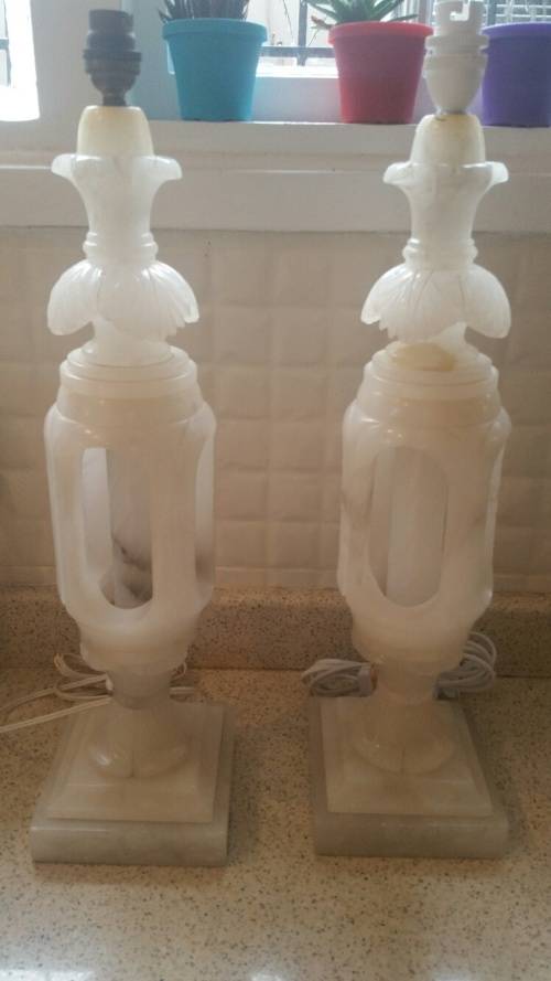A Stunning pair of White Alabaster Table Lamps and Shades
