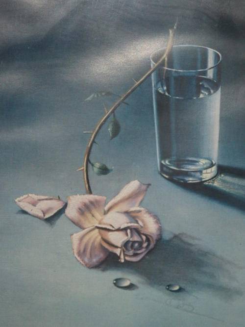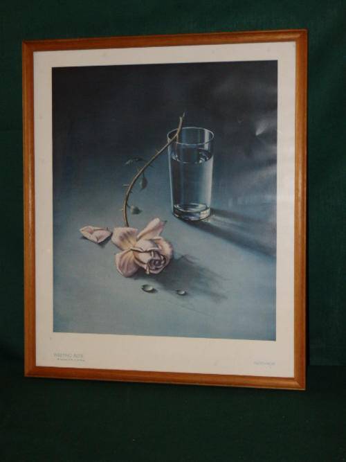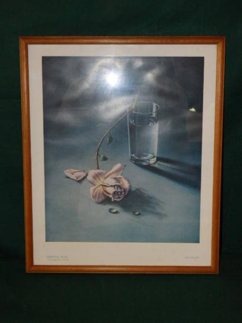 THIS STUNNING PRINT OF SOUTH AFRICAN/ RUSSIAN ARTIST, VLADIMIR TRETCHIKOFF'S PAINTING TITLED "WEEPING ROSE" IS FRAMED BEHIND GLASS IN A THIN WOODEN FRAME. THE PRINT MEASURES 36.3cm x 30.3cm. THIS WAS ONE OF HIS CLASSIC PAINTING. THIS PRINT WOULD DO WELL WITH A NICE THICK BORDER AND BROAD GOLD FRAME.
