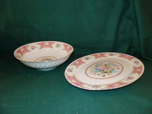 THIS STUNNING RICHWOOD OF USA PORCELAIN LARGE FOOD PLATTER AND VEGETABLE SERVING BOWL WITH A WILD FLOWER PATTERN AND PINK DESIGN IS IN EXCELLENT CONDITION WITH NO CHIPS OR CRACKS IN ANY OF THE PIECES. THE PIECES ARE ALL BEAUTIFULLY FINISHED WITH GOLD GILDED EDGES. PLEASE NOTE YOU ARE BIDDING PER ITEM TO TAKE BOTH PIECES.