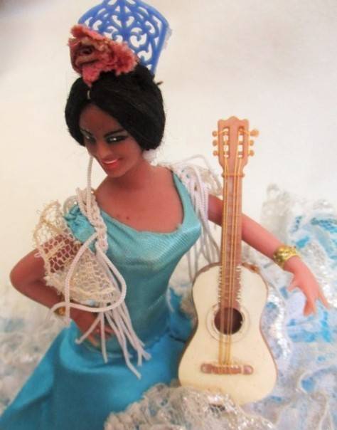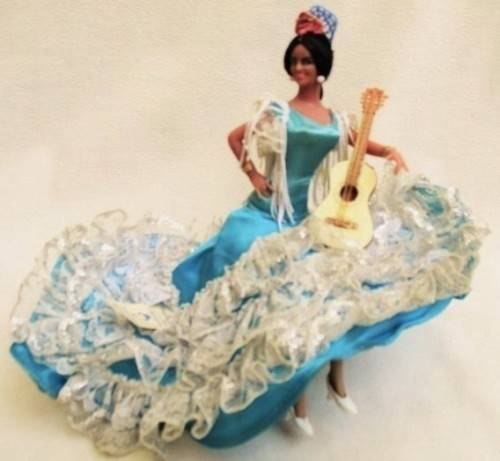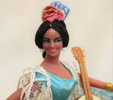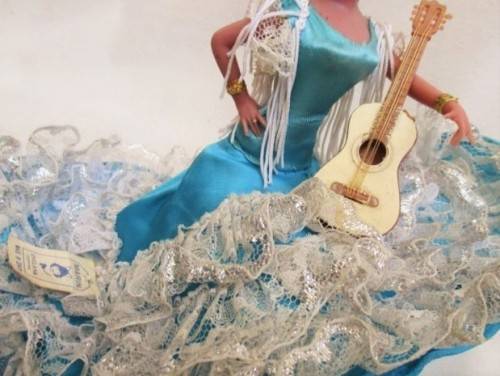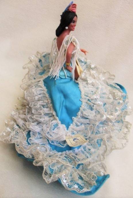 SHE IS 16CM TALL MADE OF FIRM RUBBER/PLASTIC AND STILL IN VERY GOOD CONDITION WITH ORIGINAL 'MARIN CHICLANA' TAG - AN UNUSUAL AND VERY PRETTY SPANISH DOLL!! REFER IMAGES