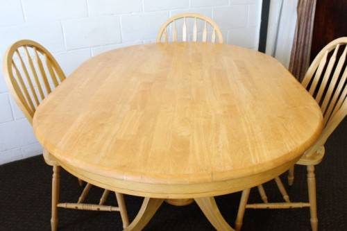 ***Fantastic solid beech wood oval dining table and four chairs with cushions***