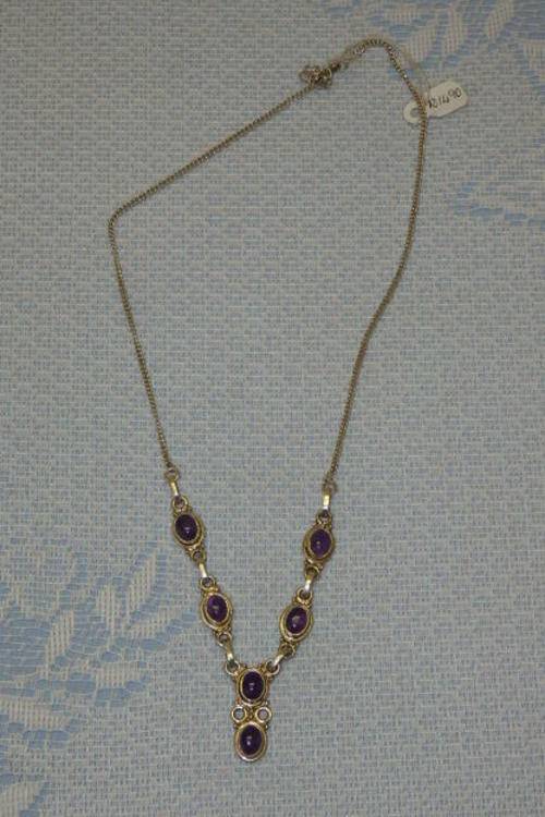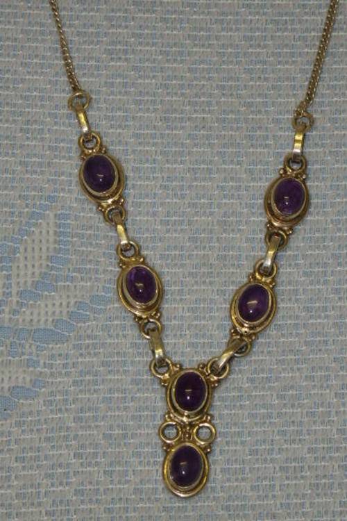 A STUNNING STERLING SILVER LADIES NECKLACE WITH A SERIES OF SIX GORGEOUS OVAL AMETHYST STONES