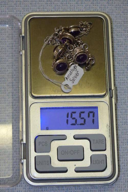 THIS EXQUISITE STERLING SILVER (STAMPED 925) LADIES NECKLACE WITH A SERIES OF SIX STUNNING OVAL AMETHYST STONES SET INTO AN VERY BEAUTIFUL DESIGNED STERLING SILVER SETTING MEASURES 45cm LONG WITH AN ADDITIONAL 2.5cm EXTENDER. THE NECKLACE IS STAMPED 925 (STERLING SILVER) . THE WEIGHT OF THE NECKLACE COMES IN AT 15.57g.
