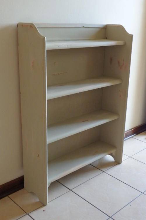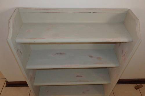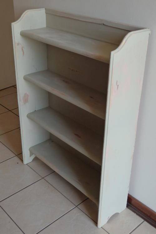 THIS STUNNING VINTAGE/ ANTIQUE? "SHABBY CHIC" BOOKCASE IN A SOFT GREEN WITH SOFT PINK UNDERTONES IS SUCH A BEAUTIFUL PIECE. THE BOOKCASE MEASURES 765mm LONG x 235mm WIDE x 1045cn TALL. THE BOOKCASE IS STURDY AND WAS VERY WELL MADE.