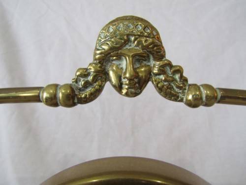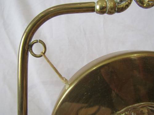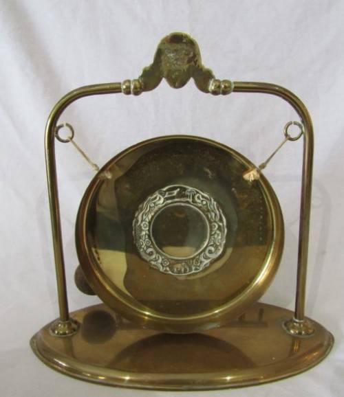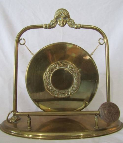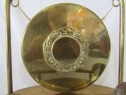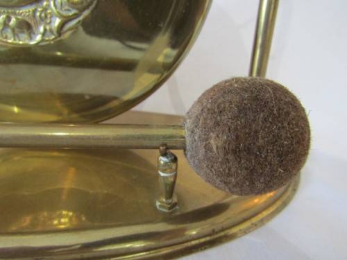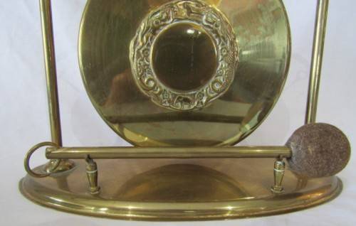 This awesome solid brass dinner gong on a stand measures 14cm x 27cm x 23cm high and has lovely detailing through out. It will make a stunning display piece as part of a brass display or for use. Please view the pics carefully to fully appreciate this awesome solid brass display and to confirm the condition. There is normal age related wear as shown in the pics. Please view the shipping options or request courier costs prior to purchasing any of our products.