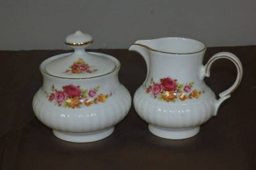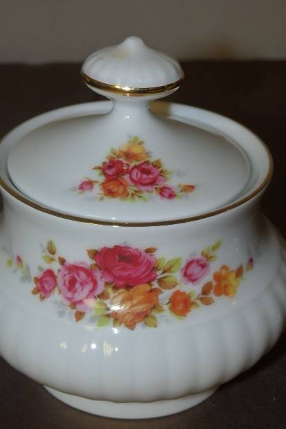 THIS STUNNING VINTAGE GERMAN MADE "MITTERTEICH BAVARIA" PORCELAIN MILK JUG AND LIDDED SUGAR BOWL SET MEASURE AS FOLLOWS: THE MILK JUG IS 11cm (SPOUT TO HANDLE) x 8cm WIDE x 8.7cm HIGH AND THE SUGAR BOWL IS 9cm WIDE x 10.5cm HIGH. THE SET HAS A BEAUTIFUL PINK AND ORANGE ROSE PATTERN SET ON CRISP WHITE PORCELAIN. THE BACK STAMP CONFIRM THEY WERE MADE AFTER 1960 TO AROUND 2006 AND JUDGING BY THE BEAUTIFUL STYLING LOOK TO BE FROM THE 1980's. THERE IS A LITTLE AGE AND USAGE RELATED WEAR AND TEAR, BUT THEY ARE STUNNING AND VERY USABLE. PLEASE VIEW THE PICS CAREFULLY FOR THE GENERAL CONDITION OF THE SET.