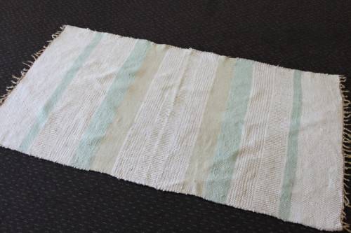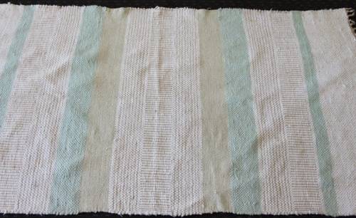 THIS STUNNING WOVEN WOOL CARPET IN SOFT GREENS, CREAM AND TAN/ WHEAT? COLOUR STRIPES IS THE PERFECT BATH CARPET ALONGSIDE A BATH OR EVEN IN A BEDROOM OR LIVING ROOM. THE CARPET MEASURES 1640mm LONG x 870mm WIDE. THE CARPET IS IN GOOD CONDITION WITH MINIMAL/ NORMAL WEAR AND TEAR. THE CARPET HAS BEEN IN STORAGE SO COULD DO WITH A WASH. PLEASE VIEW THE PICTURES CAREFULLY TO FULLY APPRECIATE THIS STUNNING WOOD CARPET AND TO CONFIRM THE CONDITION.