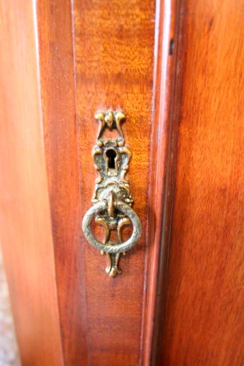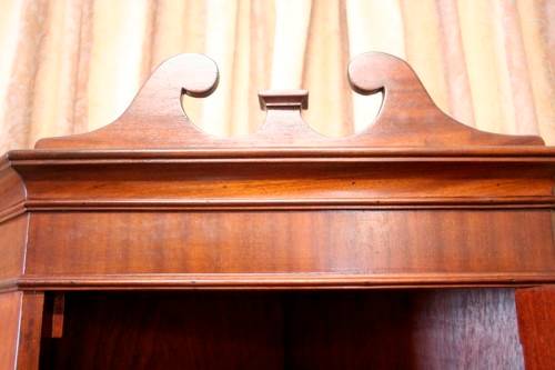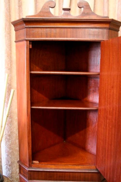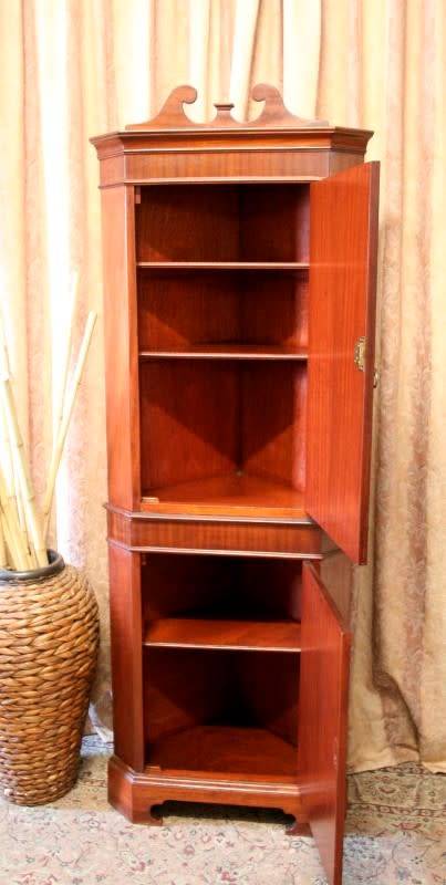 This fabulous and beautifully made 2-division Mahogany corner display unit cabinet with ample shelves and space is in great condition and the perfect cabinet for a corner in your living room that needs something special. The cabinet measures 189cm high x 68cm long x 45cm deep. The top cupboard has two wooden shelves and the bottom cupboard has one. The cabinet is in great condition and has absolute minimal age and usage related wear and tear. There is no key for this unit and the bottom handle is missing a piece. Please view the pics carefully to fully appreciate this awesome vintage corner unit cabinet and to confirm the condition. Please view the shipping options or request courier costs prior to purchasing any of our products.