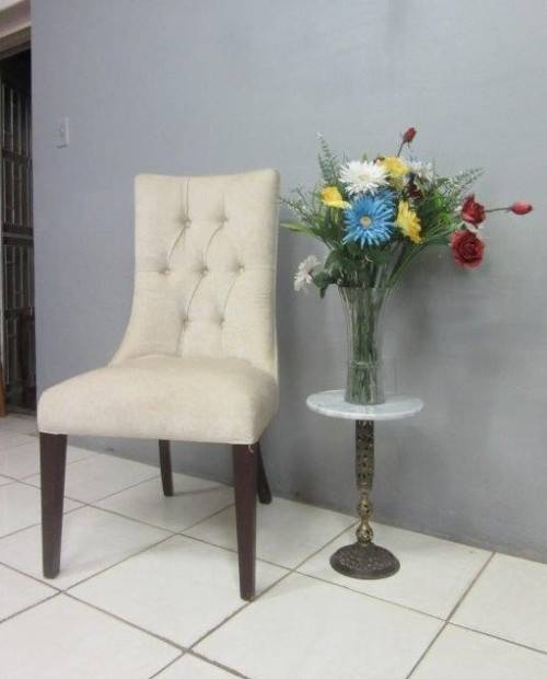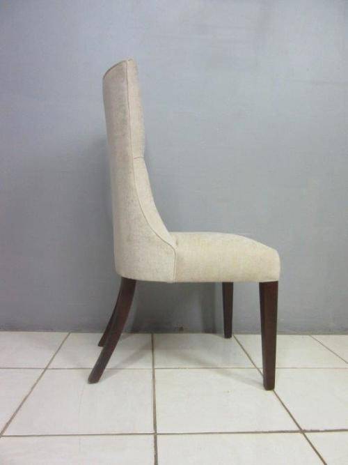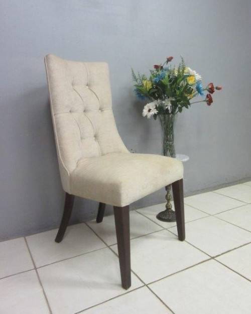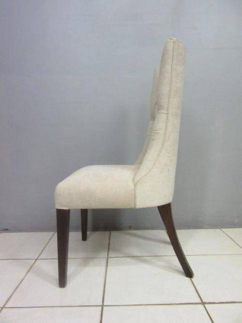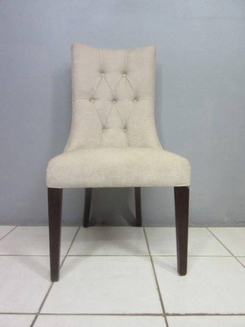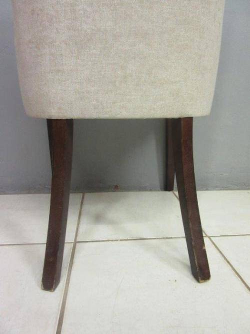 This stylish and beautifully upholstered high-back button back occasional chair is upholstered in a quality linen upholstery fabric and is in awesome condition. This is a sturdy and well made occasional chair which measures 56cm long x 53cm wide x 109cm high. This would be the ideal occasional chair in a living room, and would even look incredible in front of a dressing table or in that corner that needs a little something special. The chair has minimal/ normal usage related wear and tear. Please view the pics carefully to fully appreciate this awesome quality occasional chair and to confirm the condition.