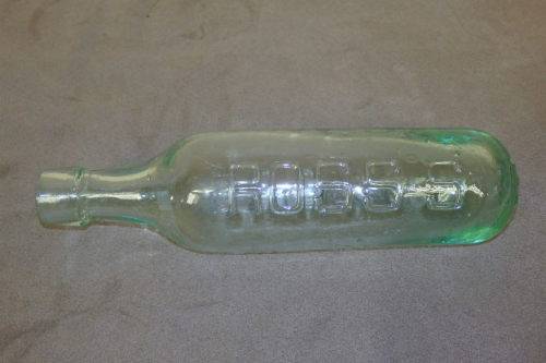 THIS SUPER-RARE ANTIQUE (1870 TO 1900) BRITISH MADE "ROSS'S" OF BELFAST GLASS GINGER ALE "TORPEDO" SHAPED BOTTLE MEASURES 24.5cm LONG. THE ROSS'S GINGER ALE BOTTLES WERE INITIALLY IMPORTED FOR THE BRITISH TROOPS FIGHTING IN THE ZULU AND BOER WARS. THERE ARE NO VISIBLE CHIPS OR CRACKS IN THIS AWESOME BOTTLE.
