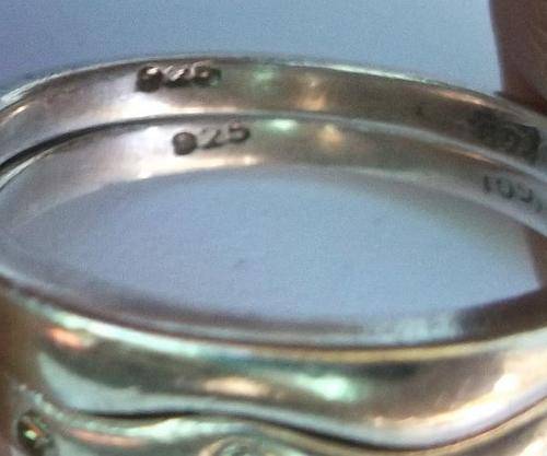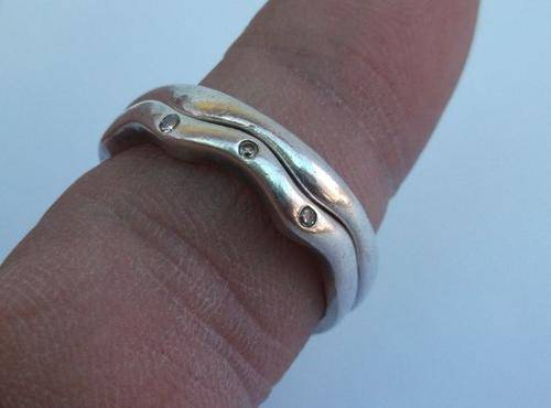 A SUPERB 2 PIECE STERLING SILVER DESIGNER STACKING RING SET WITH THREE REAL DIAMONDS ....WOW !!!